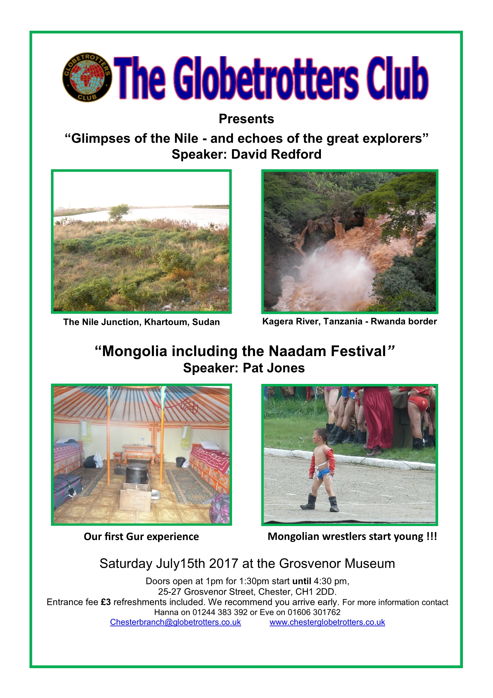 Doors open 1pm for 1:30pm Start till 4:30pm Entrance Fee £3.00 includes refreshments and two talks Grosvenor Museum 25-27 Grosvenor Street, CH1 2DD Enquiries to Hanna tel: 01244383392 or Angela tel: 01244 629930