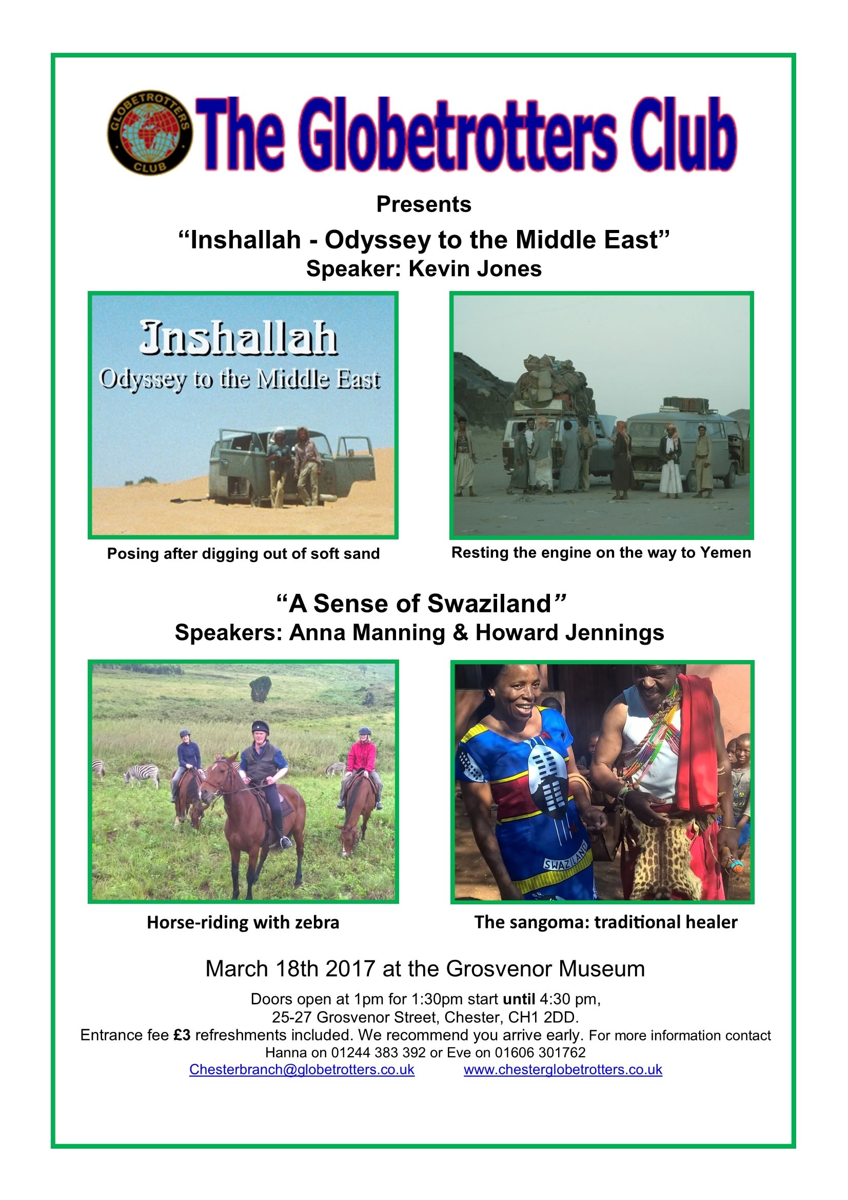 Doors open 1pm for 1:30pm Start till 4:30pm Entrance Fee £3.00 includes refreshments and two talks Grosvenor Museum 25-27 Grosvenor Street, CH1 2DD Enquiries to Hanna tel: 01244383392 or Angela tel: 01244 629930