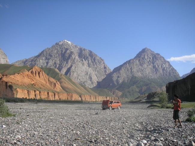 I shared a car ride with a young American lad who had been teaching English in Japan for a year and spending some time travelling around Central Asia before heading home. As the journey took two days with an overnight stay on a cold concrete floor in Sary Tash, it was great to have some company. The ride up through the Pamir Mountains was wonderful and dotted all along the route were yurts where the herding families had moved up to the high pastures for the summer.